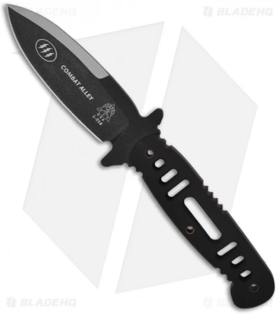 TOPS Knives Combat Alley Fixed Blade Knife (4″ Black Plain) COALY-4