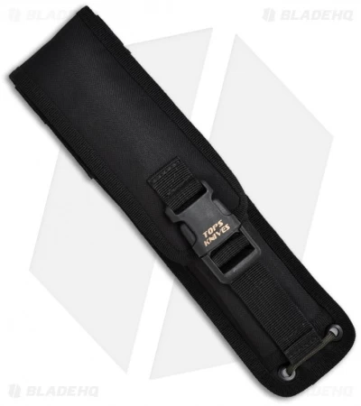 TOPS Knives’ Cuma Evolution has a stout 1095 steel blade with a black traction coating and upper and lower edges. The bottom edge is sharpened and offers almost 5″ of cutting power. The handle scales are black linen Micarta with Rocky Mountain Tread (RMT), an aggressive array of grooves for outstanding grip. Included with the Cuma Evolution is a heavy duty black nylon sheath.
