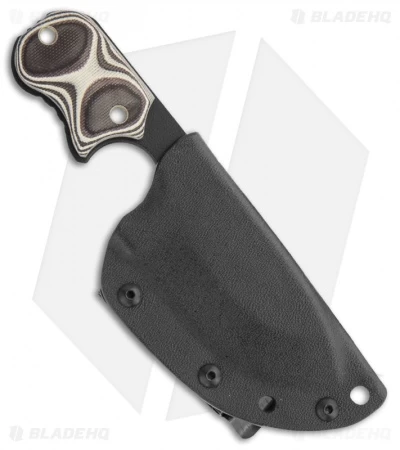 The FDX, or Field Duty Extreme is the result of field testing in rugged and extreme conditions. It is ready to tackle just about any job you need with a 3/16″ thick black traction coated blade and a comfortable layered black/white G-10 handle. Includes Kydex sheath with steel belt clip. This model has a black finished blade