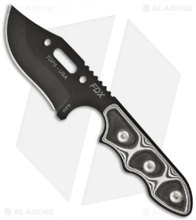 TOPS Knives FDX XL Hunter Point Knife Black/White G-10 (3″ Black Plain) FDX-06
