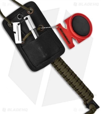 The Hoffman Harpoon was designed by Terrill Hoffman, an International Hunter and Photographer. Founder of “PWYP” Practice What You Preach, the Outdoor Survival Outing. This knife has a black traction coated 1095 high carbon steel blade with a 2.5″ cutting edge. Full tang construction with paracord wrapped handle. Includes a nylon neck sheath, Lansky Quick Fix sharpener kit, field fire starter kit and can opener!