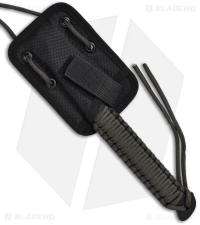 Features a 3.25″ 1095 high carbon steel blade with black traction coating. Full tang construction with paracord wrapped handle. Includes a nylon neck sheath, Lansky Quick Fix sharpener kit, field fire starter kit and can opener!