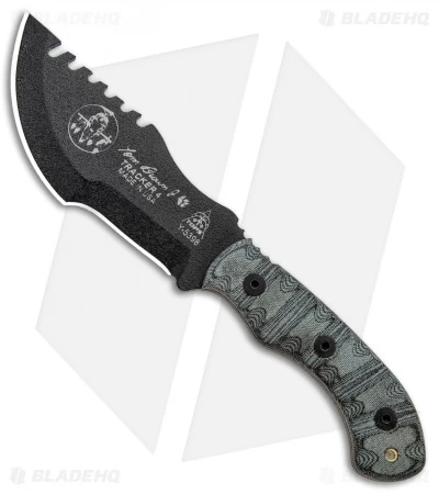 The Mini Tom Brown Tracker knife is designed by Tom Brown as a scaled down survival knife that keeps weight to a minimum. The Mini Tom Brown Tracker has a tough 1095 steel blade with a black traction coating and Rocky Mountain Tread Micarta scales that make neck carry more comfortable and discreet. The Kydex sheath features a removable clip for neck carry.