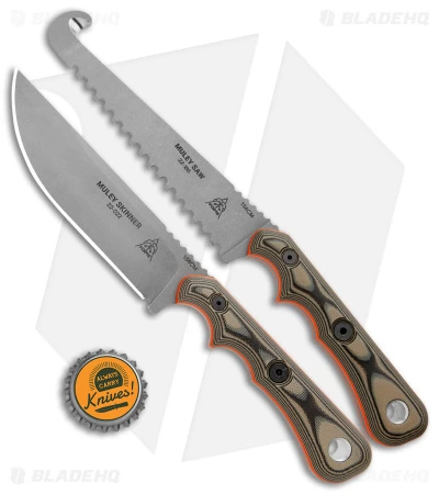 This TOPS Knives Muley combo pack includes both the Muley Skinner and the Muley Saw with a single combo sheath made from genuine leather.