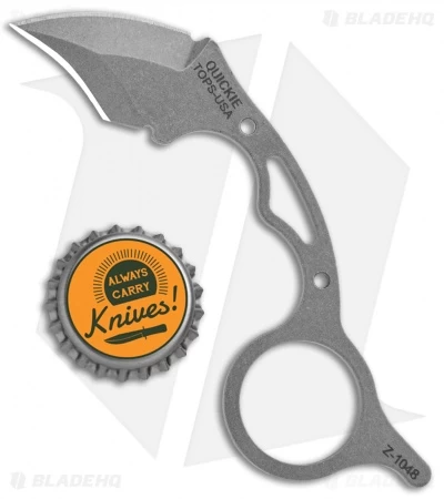 The TOPS Quickie offers a 3 finger karambit design for tactical EDC use. This compact, yet effective fixed blade is made from 1095 steel and features an intimidating double edged blade. It rests securely in the hand, while allowing the dexterity needed for tactical situations. Item includes a fitted kydex sheath for secure daily carry. When time is of the essence reach for the Quickie karmbit from TOPS Knives.