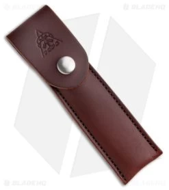 - Stylish brown leather sheath for safe storage or pocket carry.