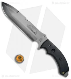 The TOPS Tahoma Field Knife was designed to provide anything the outdoor professional could need in a knife. The weight to size ratio was carefully monitored to provide for comfortable all-day carry and use. It has a spear point blade with a single edge and a spine notch for a variety of outdoor tasks. The curved handle was designed with ergonomics in mind, with dual spindle sockets and a pry bar at the pommel. Item includes a heavy duty nylon sheath for comfortable carry.