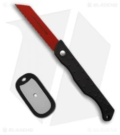 Includes: TOPS folding survival saw, emergency whistle, fire starter, P-38 steel can opener, signal mirror, military ball chain.