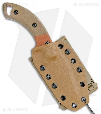 From TOPS and Viking Tactics, the Crusader is a medium sized knife. The green and orange micarta handle is contoured to provide an ergonomic grip ideal for close up work, slashing, and penetration alike. Through it all this knife is solid as a rock. The spine of the knife is milled with unique ridges, adding grip and style. Included is a firm, brown kydex sheath, belt attachment straps, and a whistle.